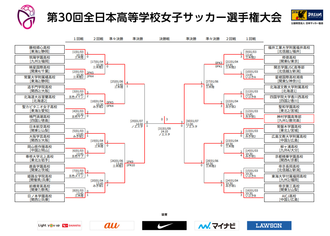 13:45 大阪学芸〔関西3/大阪府〕 1-1(PK 9-10)日ノ本学園〔関西1/兵庫県〕
