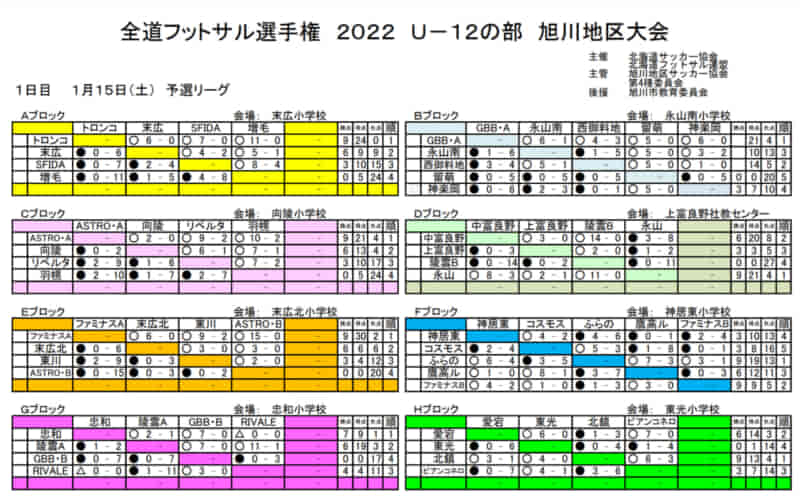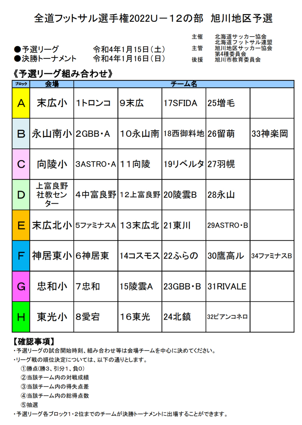 1月15日から行われる全道フットサル選手権2022 U-12の部 旭川地区予選の情報をお知らせします。