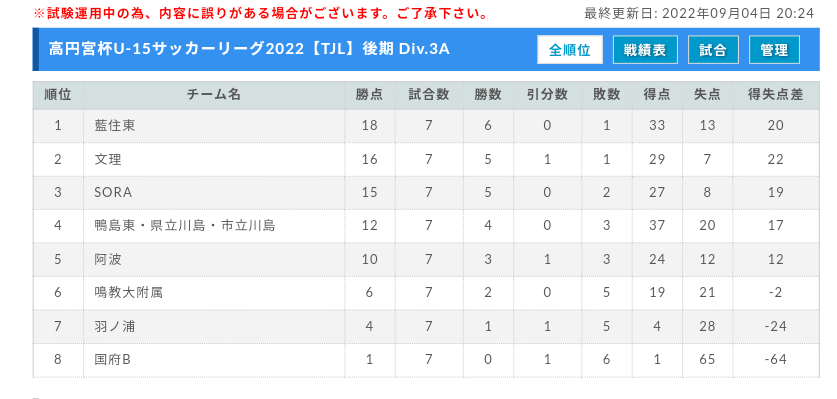 高円宮杯 JFA U-15 サッカーリーグ 2022 徳島県リーグ【TJL】の情報をお知らせします。