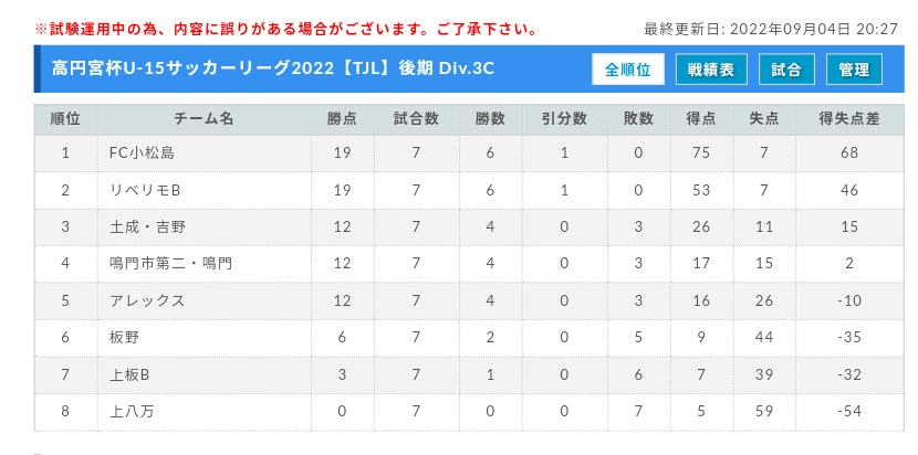 高円宮杯 JFA U-15 サッカーリーグ 2022 徳島県リーグ【TJL】