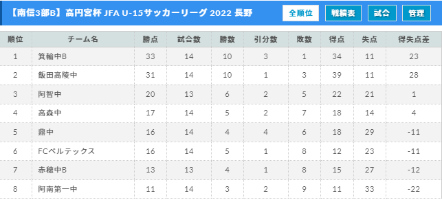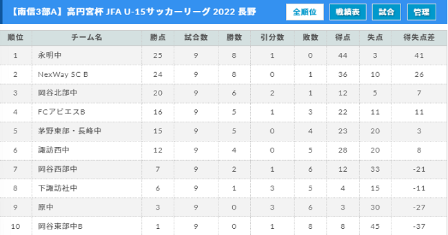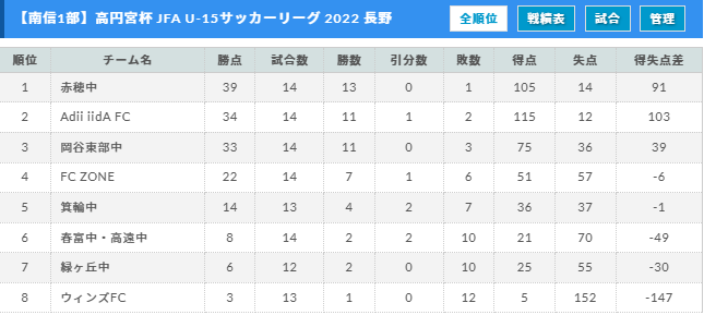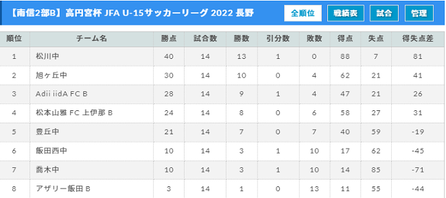 高円宮杯 JFA U-15サッカーリーグ 2022 長野(中信地区)大会