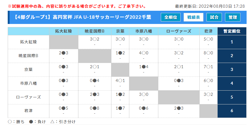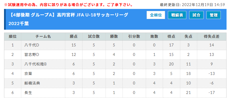 高円宮杯 JFA U-18サッカーリーグ2022千葉 4部