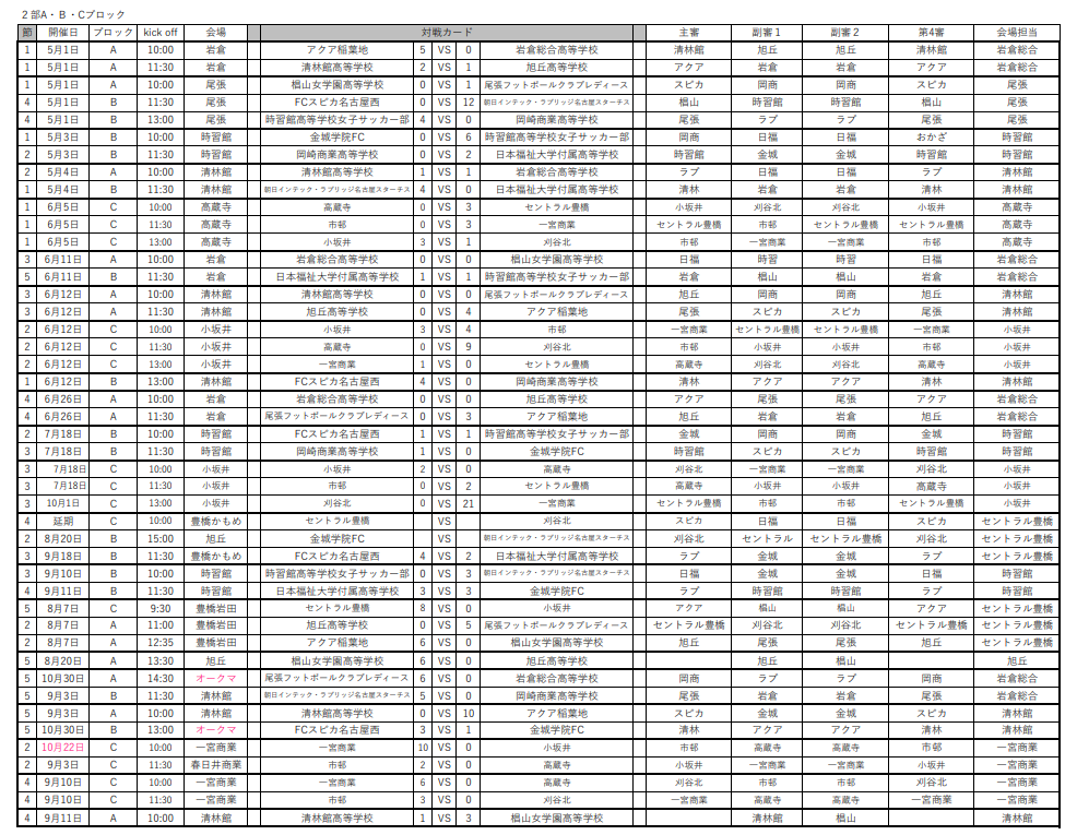 大会概要抜粋(参照:プレU-18女子サッカーリーグ2022愛知公式HP)
