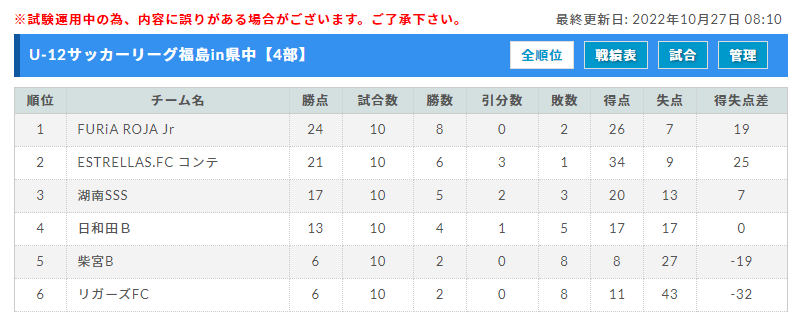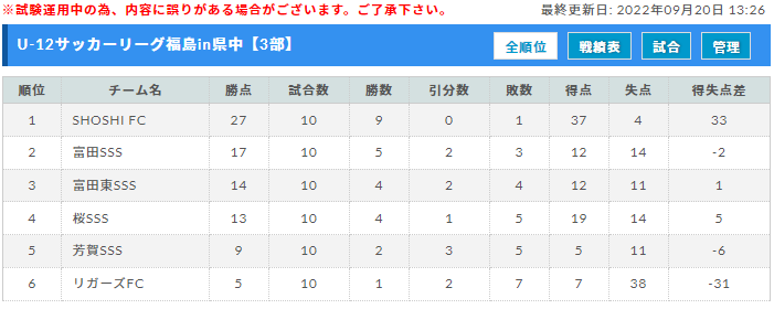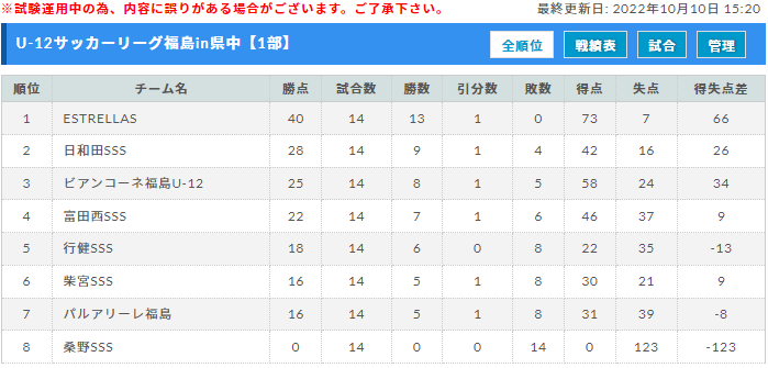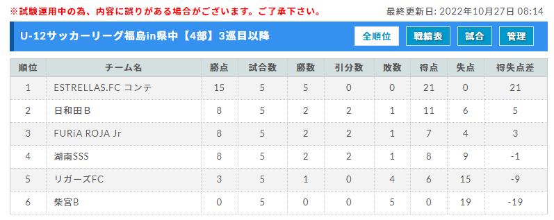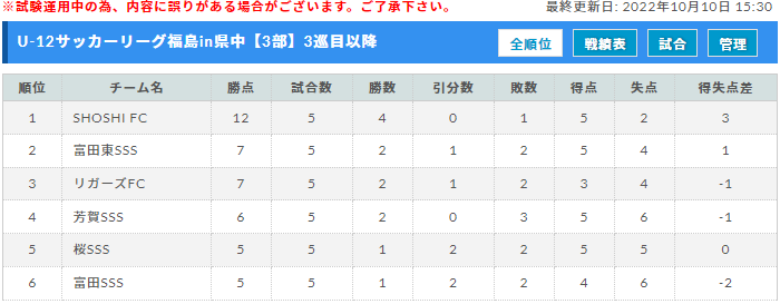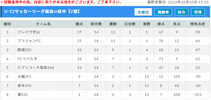 2022年5月15日から行われた「2022年度JFA U-12サッカーリーグ福島in県中 」の情報をお知らせします。