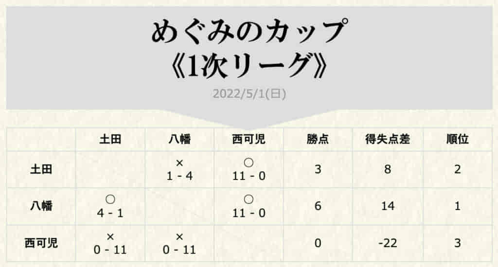 1次リーグ(5/1)(判明分)
