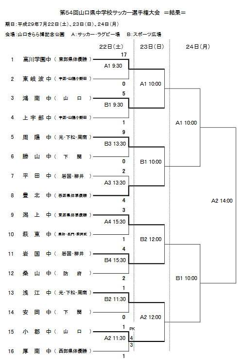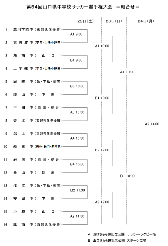 山口県中学校サッカー選手権大会の組合せの