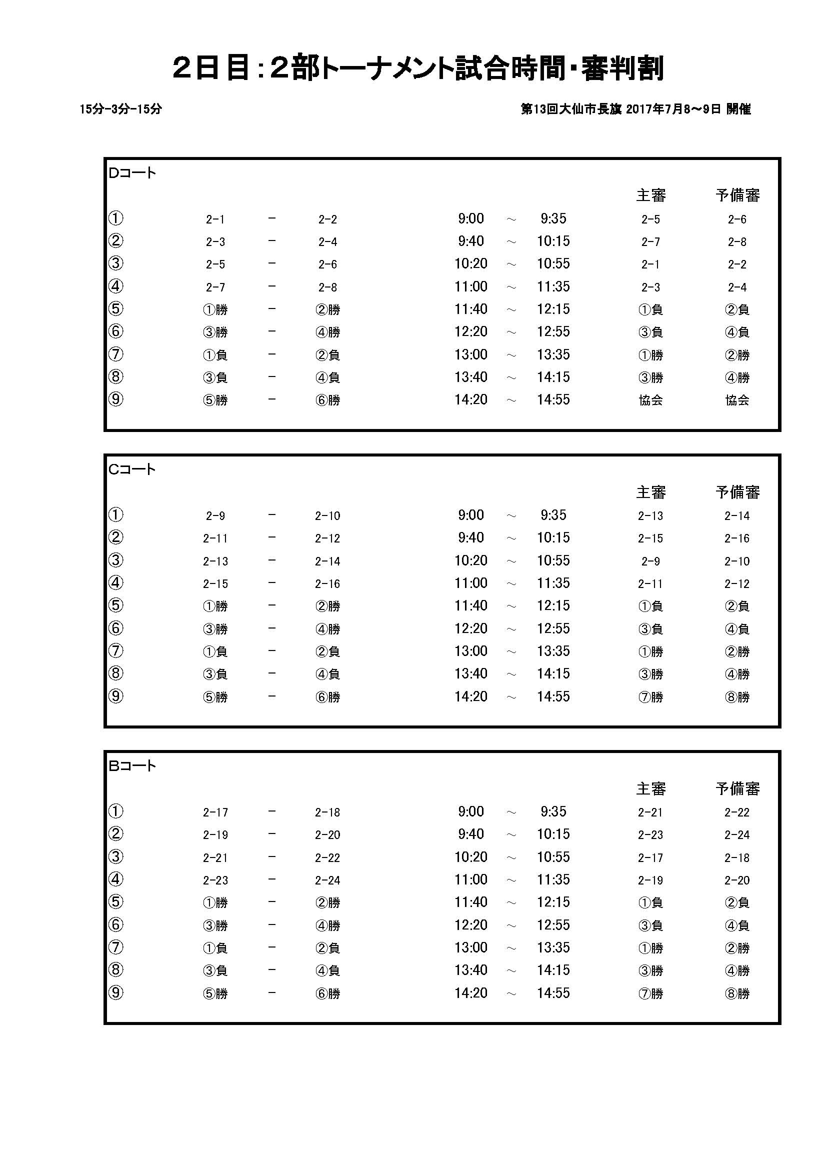 ② 試合時間予選リーグ、順位トーナメントともに、15分-3分-15分とする。