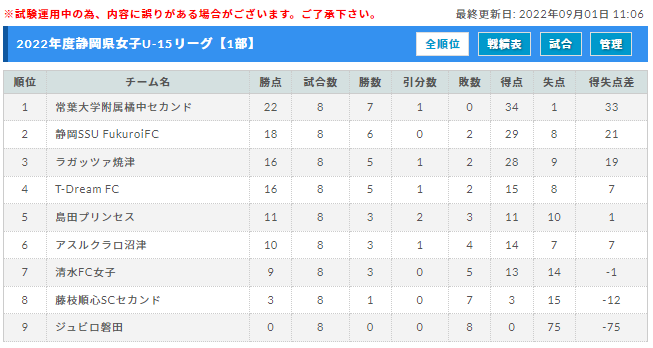 2022年度 第18回静岡県女子ジュニアユースサッカーリーグ 兼U-15女子サッカーリーグ