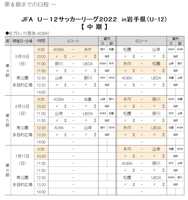 JFA U-12サッカーリーグ2022岩手盛岡地区についてお知らせします。