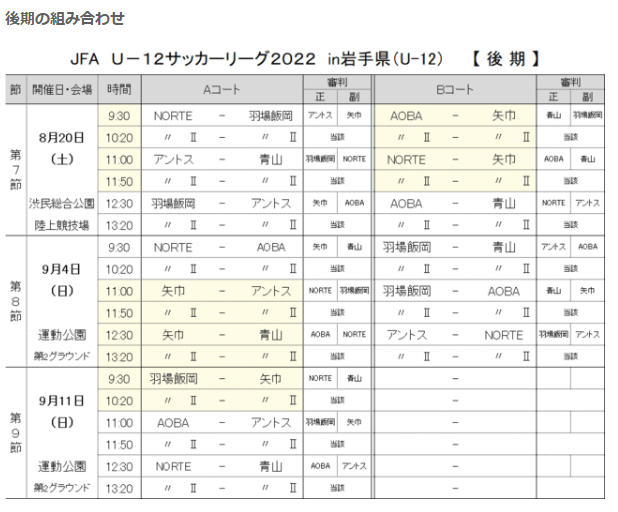 JFA U-12サッカーリーグ2022in岩手 盛岡地区
