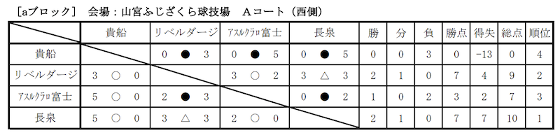 ・順位決定戦は、引き分けの場合即3名によるPK戦を行う。(延長戦無し。) - その他