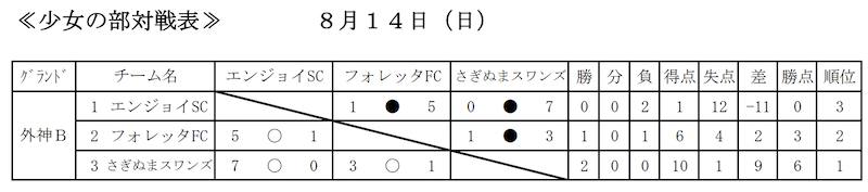 少年順位別リーグ戦後順位決定戦・少女リーグ戦:2022年8月14日(日)