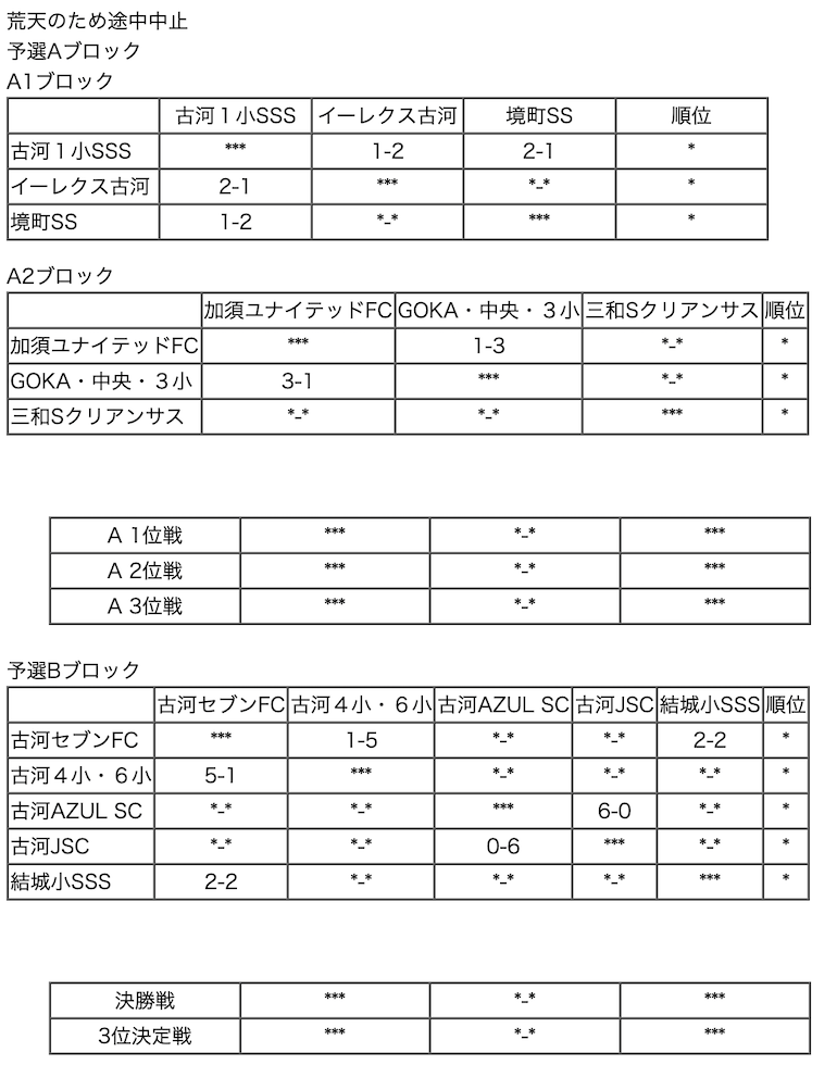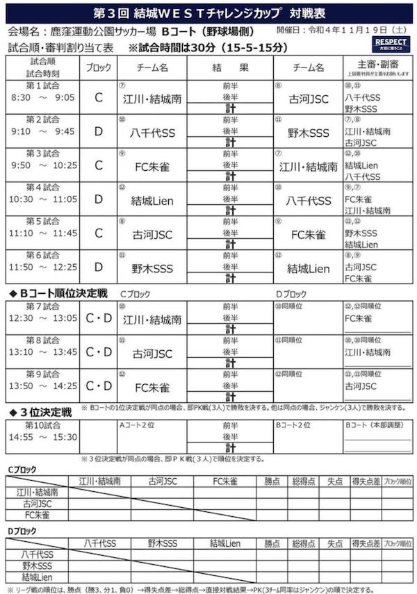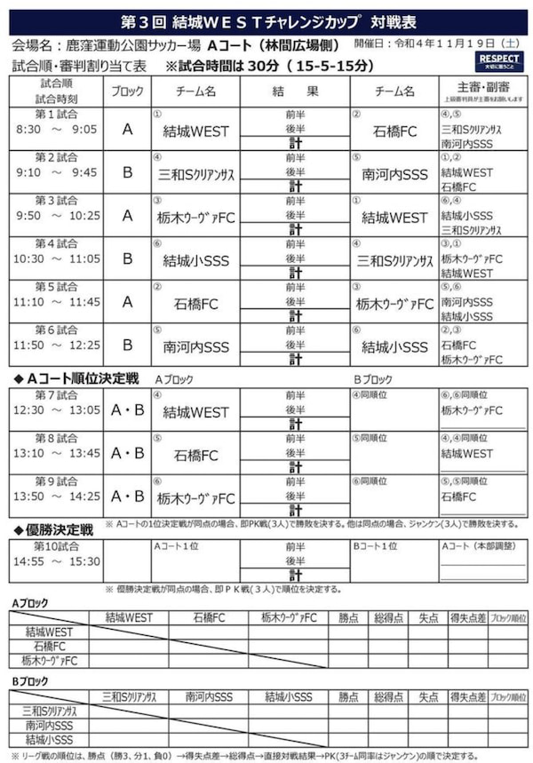 ・11/19 結城WESTチャレンジカップ(U-11)【一部結果】