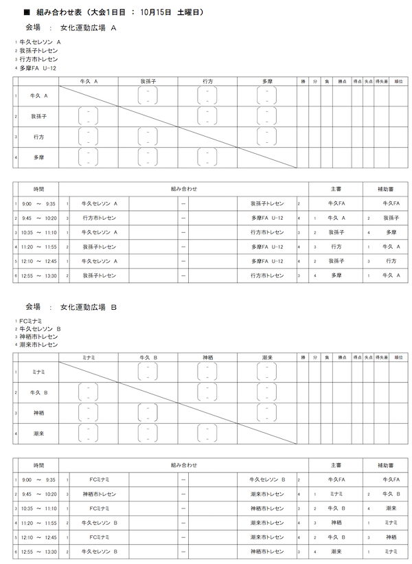 ・10/15,16 U-12牛久トレセンカップ2022 【結果】