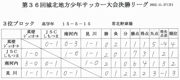 決勝リーグ結果(11/27)