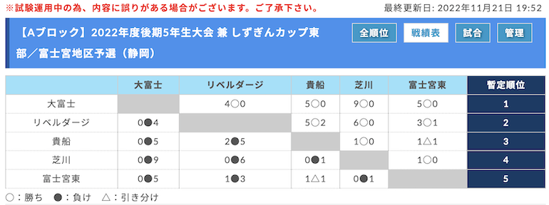 11月13日から行われた「後期5年生大会 第31回富士宮ライオンズカップ 兼 しずぎんカップ静岡県U-11大会 東部/富士宮地区予選」の情報をお知らせします。