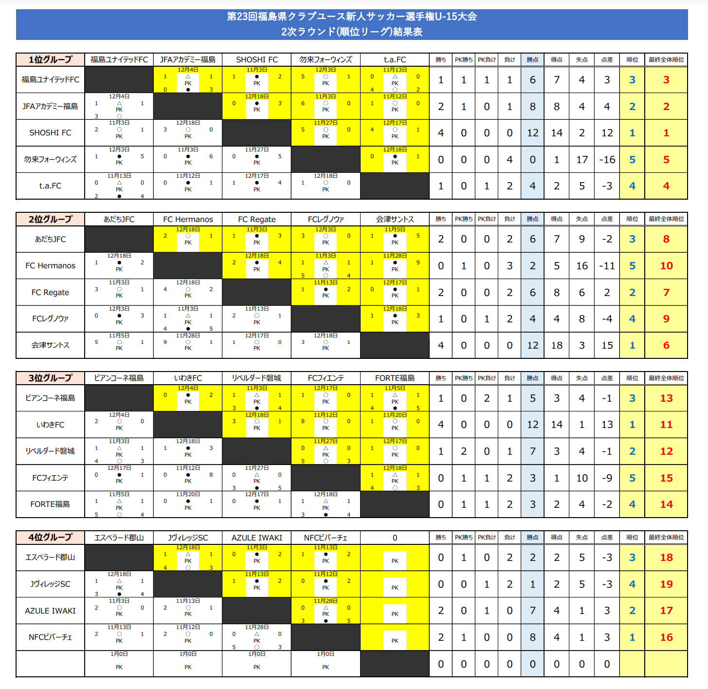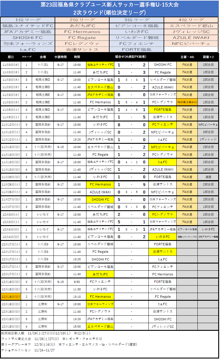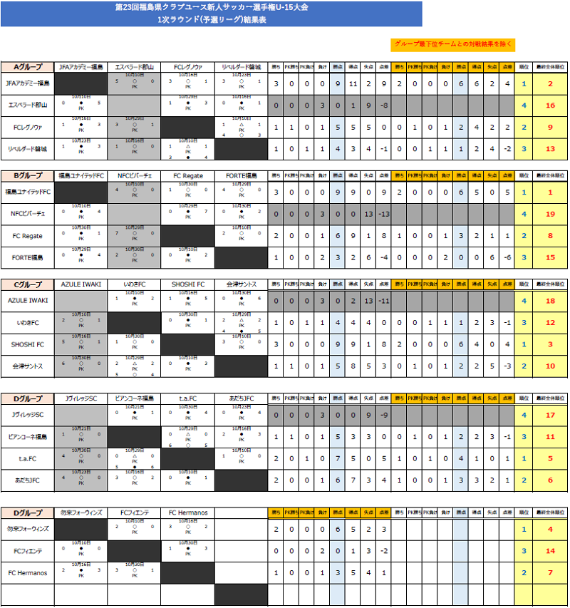 10月10日から行われた第23回福島県クラブユース新人サッカー選手権U-15大会の情報をお知らせします。