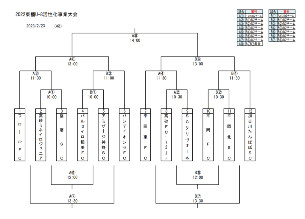 2月23日に行われる2022年度 東播U-8活性化事業大会の情報をお知らせします。