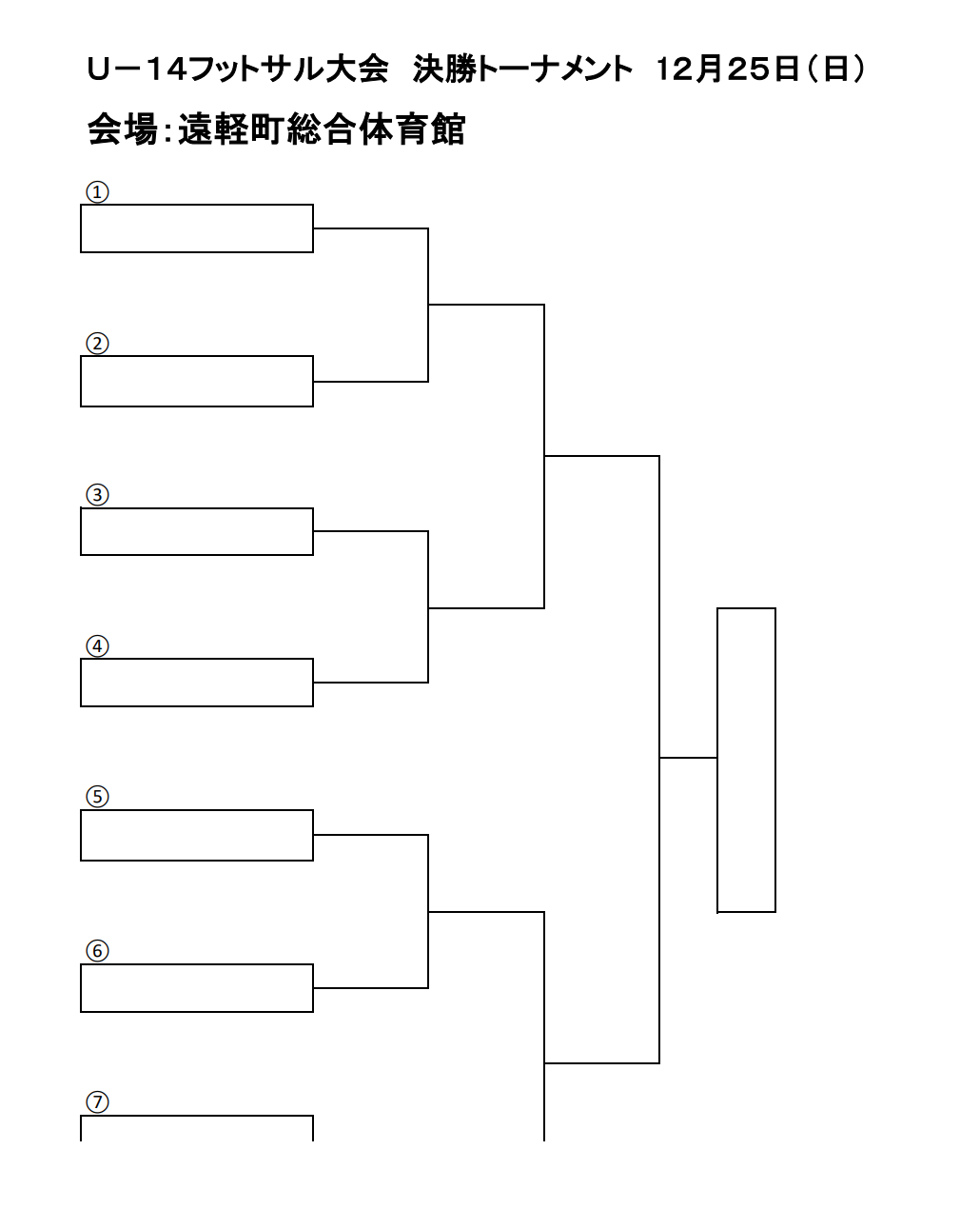 (2)決勝トーナメント(2日目)は、各グループ1位と各グループ2位のチームのうちから上位2チーム(ワイルドカード)が決勝トーナメントに出場する。 - 優勝チームには、2023年2月25日(土)~2月26日(日)、小樽市にて行われる全道フットサル選手権2023U-14の部への参加を義務づける。ただし、優勝チームが新型コロナウイルス感染症の影響を事由に出場を辞退した場合は、決勝トーナメントの上位チームから繰り上げて参加することができる。