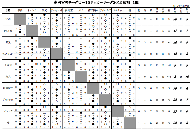 高円宮杯U-15サッカーリーグ2015京都(参照サイト:京都府サッカー協会)