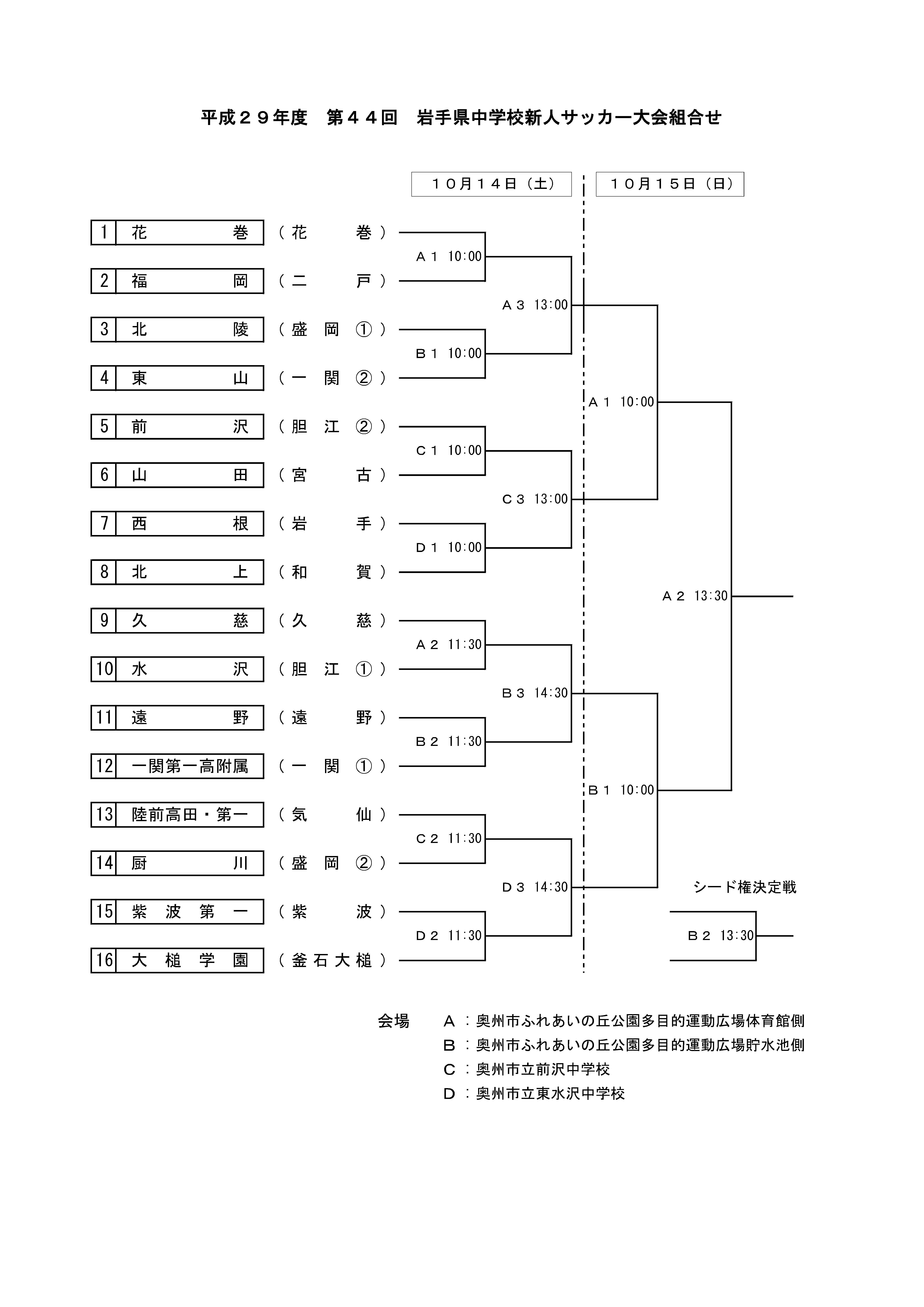 (2)同一地区2チーム出場の場合は決勝まで対戦しないようにする。