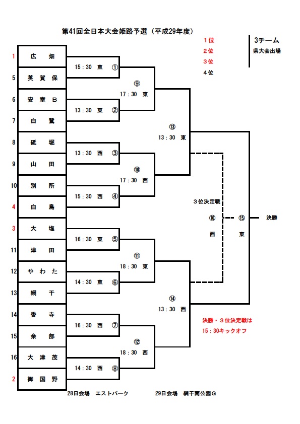 - 上位3チームは、姫路代表 として11/11~行われる第41回全日本少年サッカー大会兵庫県大会に出場する。