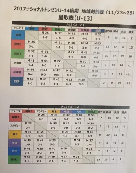 2017年度 JFAナショナルトレセンU-13後期 地域対抗戦(11/23~11/26)