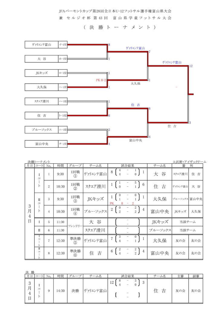 - 2016年度 バーモントカップ第26回全日本少年フットサル富山県大会:ジュニアサッカーNEWS
