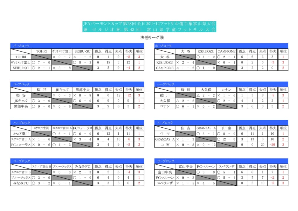 - 2017年度バーモントカップ第27回全日本少年フットサル富山県大会(兼)セルジオ杯第42回富山県学童フットサル大会:ジュニアサッカーNEWS