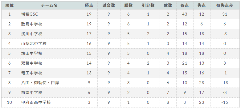 山梨北中学校/双葉中学校/浅川中学校/敷島中学校/竜王中学校/甲府南西中学校/笛南中学校/八田・御勅使・巨摩/増穂GSC/塩山中学校