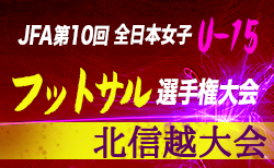 11月23日(土)、24日(日)に行われた、2019年度 JFA 第10回全日本U-15女子フットサル選手権大会 北信越大会の結果をお知らせします。 優勝は福井丸岡RUCKです!全国大会出場、おめでとうございます! 最終結果 優勝:福井丸岡RUCK(福井)(全国大会出場) 準優勝:OWNGOAL(富山) <11/24結果> @七尾総合市民体育館(石川) 福井丸岡RUCK(福井) 5-1 星稜PEL(石川) 長岡joias(新潟) 3-2 マレーザKiso U-15(長野) OWNGOAL(富山) 0-1 福井丸岡RUCK(福井) 星稜PEL(石川) - 長岡joias(新潟) マレーザKiso U-15(長野) 1-3 OWNGOA…
