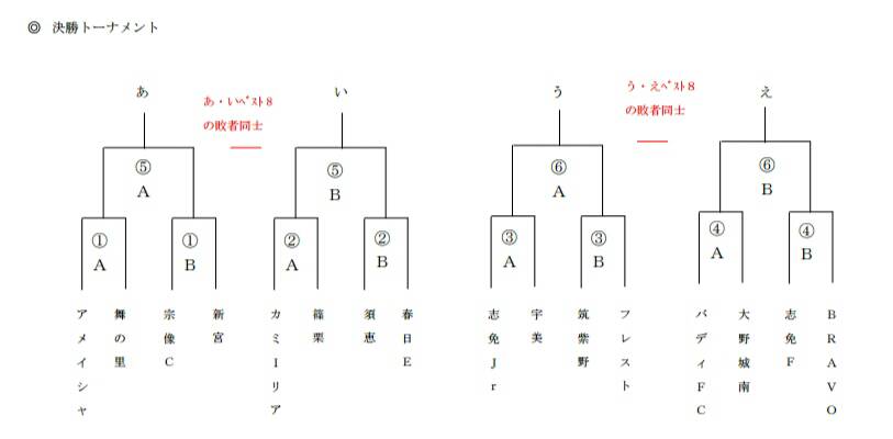 ※組み合わせチーム名の間違いにつきまして、お問い合わせにてご指摘頂きました。大変失礼いたしました。