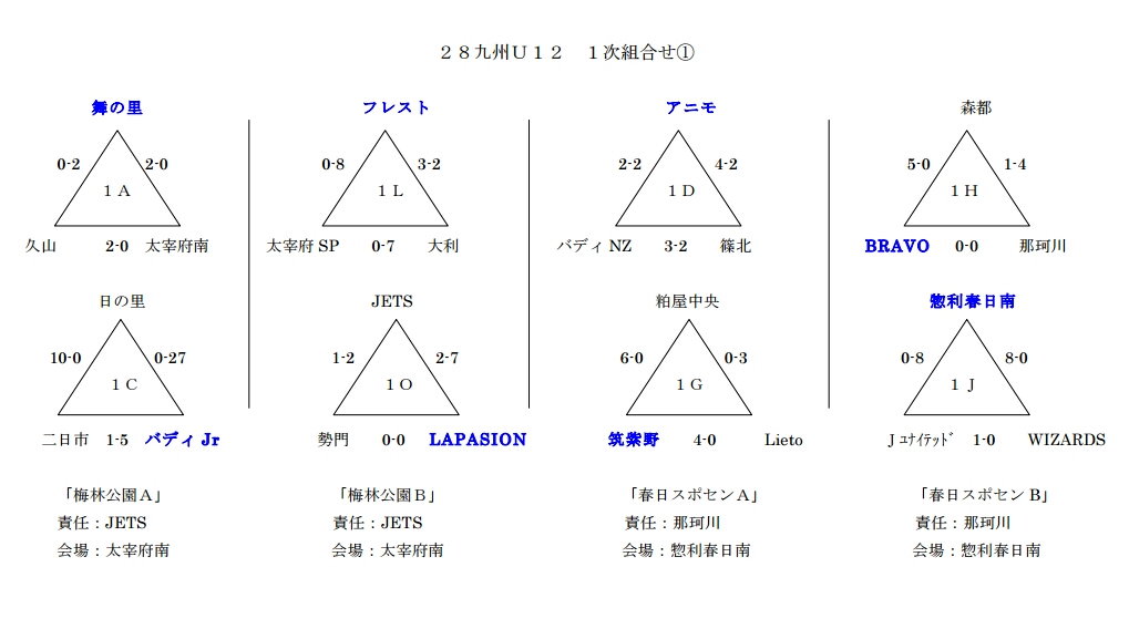 1J 惣利春日南 8-0 Jユナイテッド Jユナイテッド 1-0 WIZARDS WIZARDS 0-8 惣利春日南