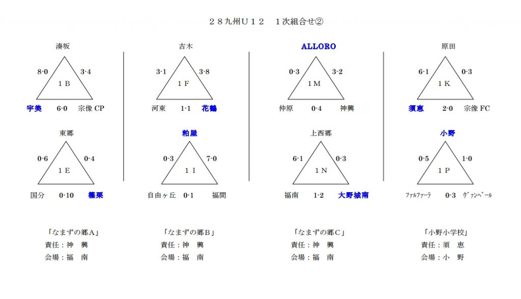 1N 上西郷 1-6 福南 福南 1-2 大野城南 大野城南 3-0 上西郷