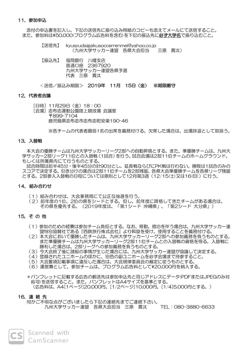 本大会の優勝チームは九州大学サッカーリーグ2部への自動昇格とする。