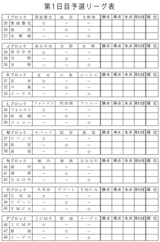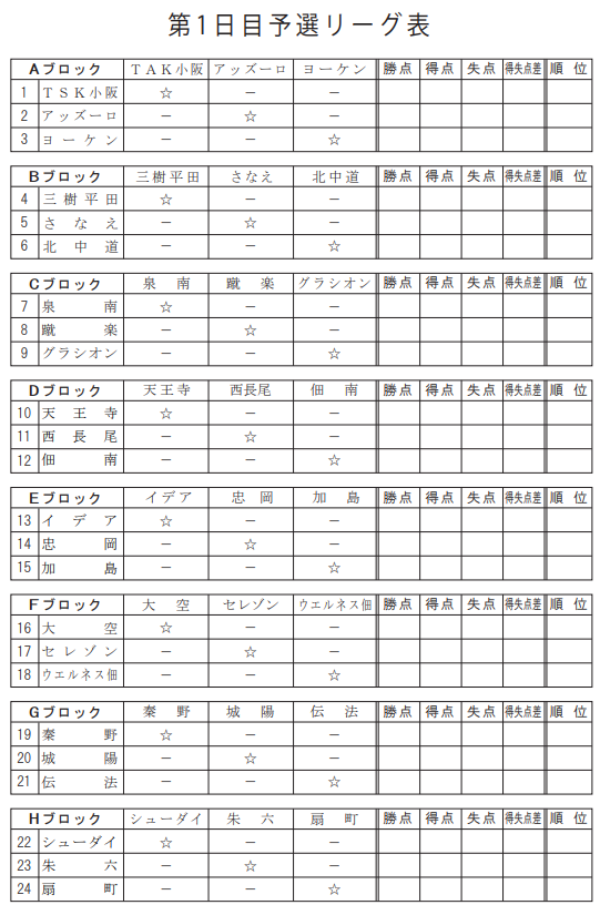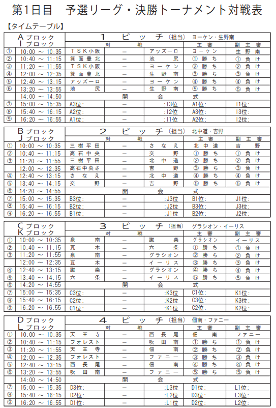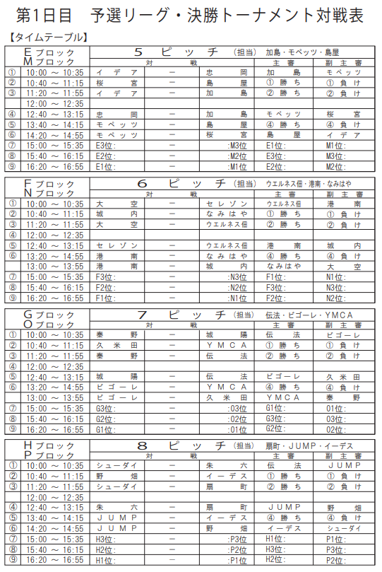 ・第1日目…予選リーグと順位トーナメントの1回戦を行う。