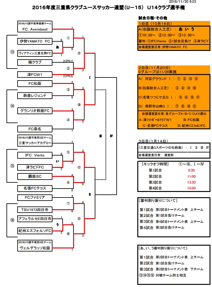 2016年度三重県クラブユースサッカー連盟(U-15)U14クラブ選手権