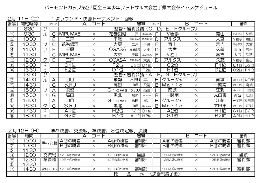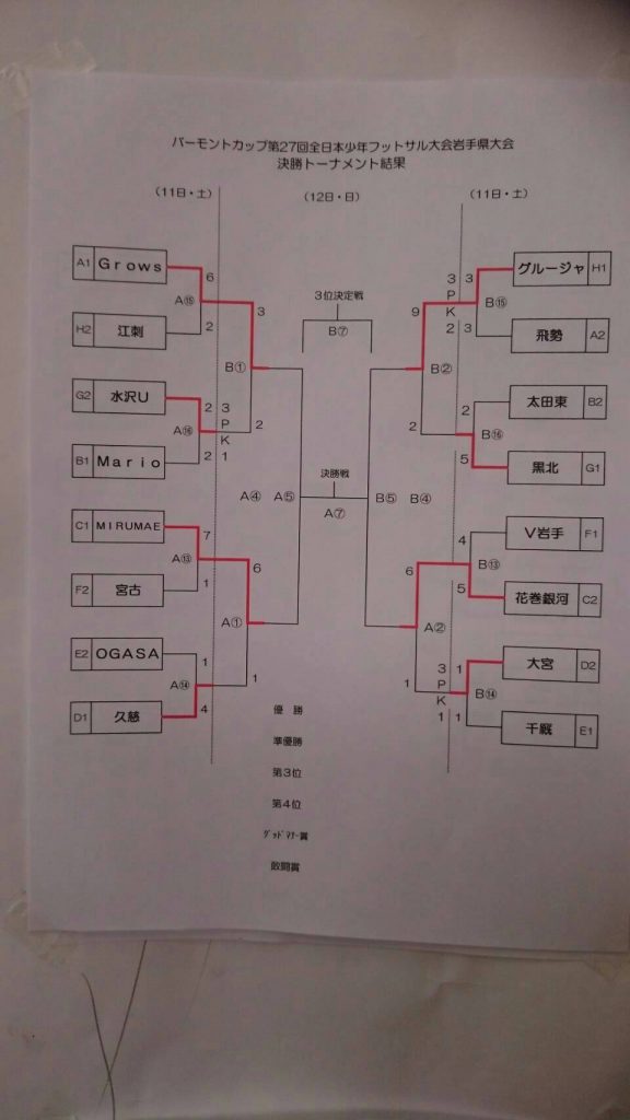 2016年度 バーモントカップ 第27回全日本少年フットサル大会岩手県大会
