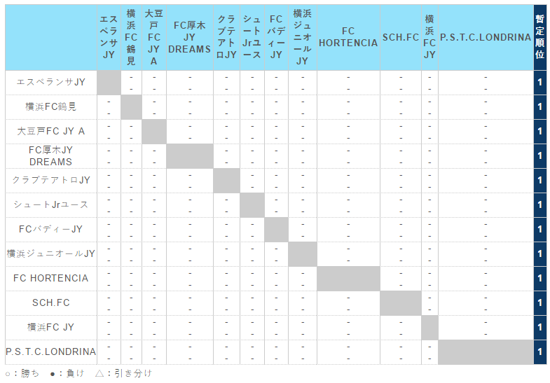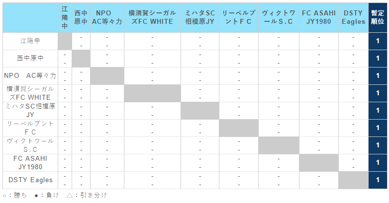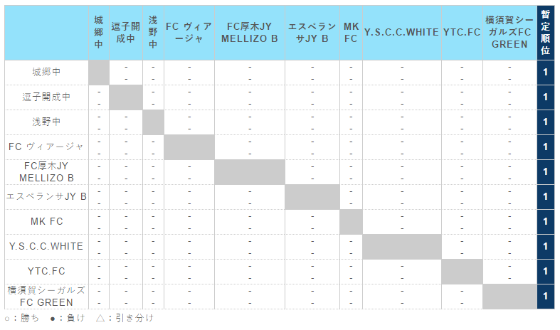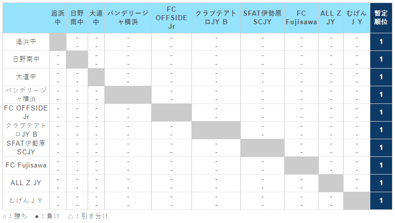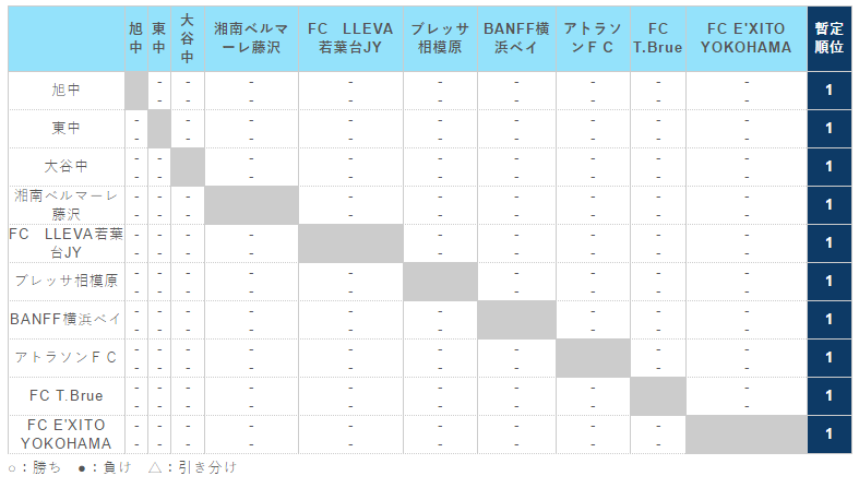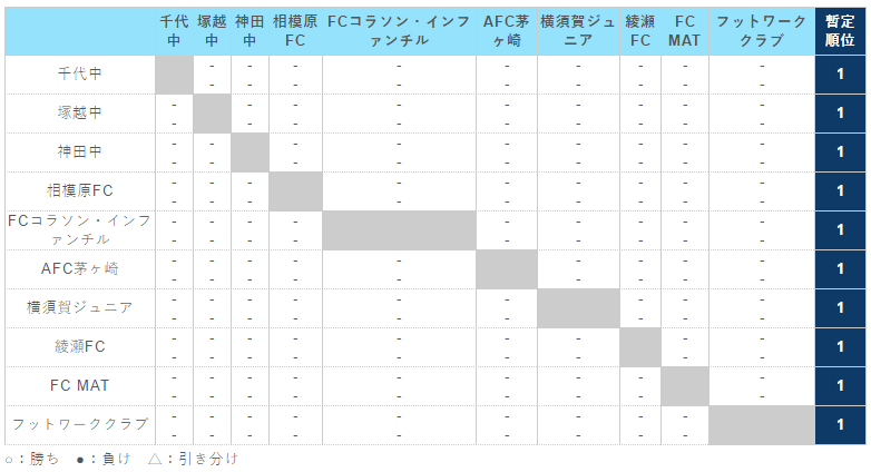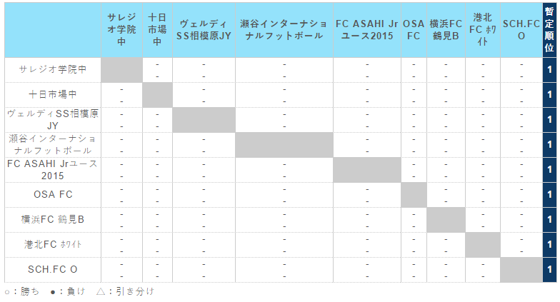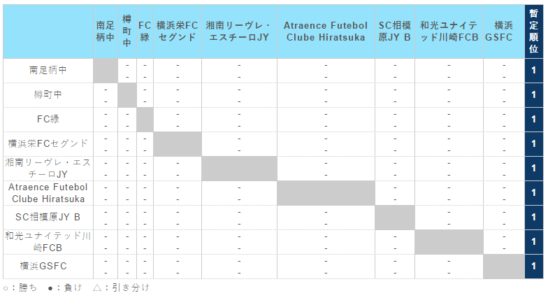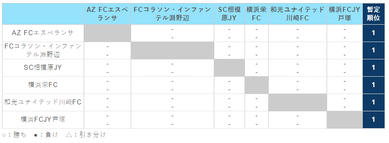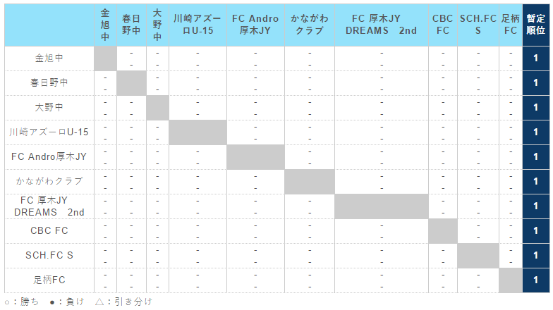 神奈川県(U-15) サッカーリーグ 1st ステージ(1・2 部リーグ)
