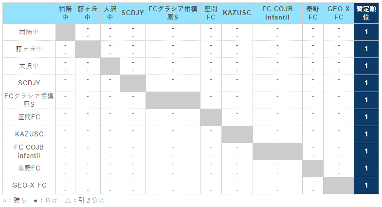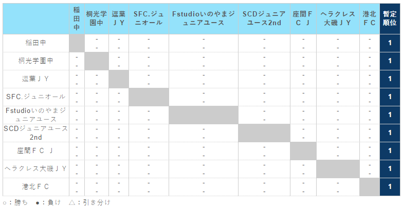 トップリーグ1 位は、関東ユース(U-15)サッカーリーグ参入戦への出場権を与えられます。