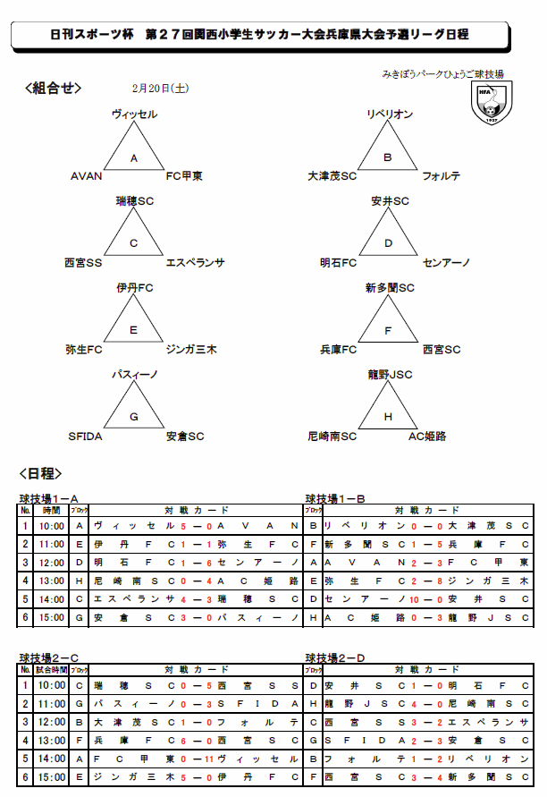 第27回 関西小学生サッカー大会 北播磨予選 12/12,13,19