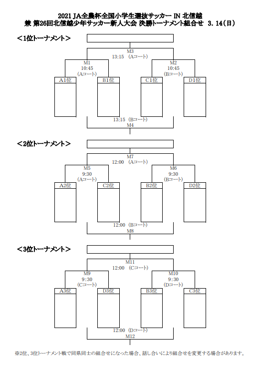 (2) 各ブロック 1 位チームは、決勝トーナメントに進出する。