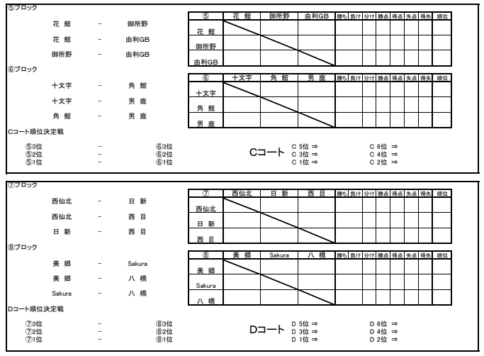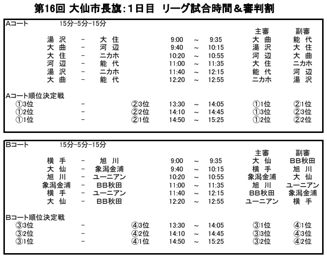 ・試合時間予選リーグ、順位トーナメントともに、15分-3分-15分とする。