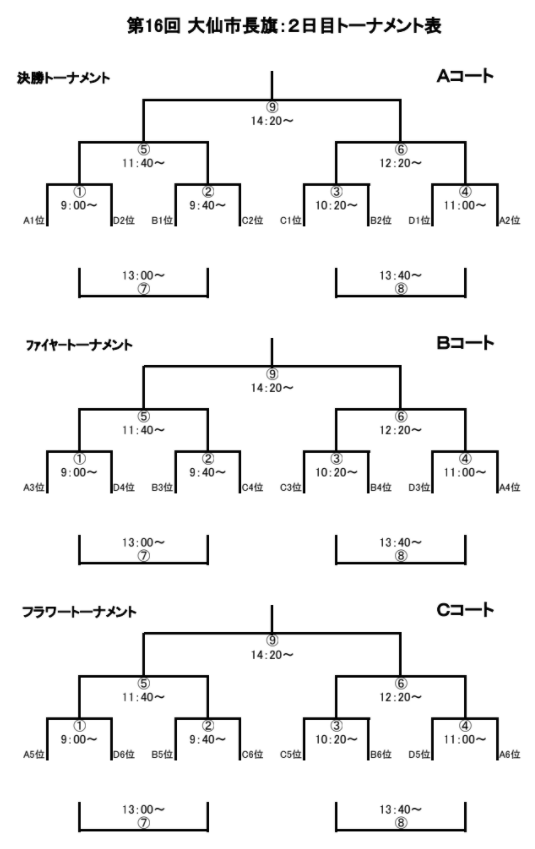 ・2日目、各ブロックの順位によるトーナメント戦を実施する。